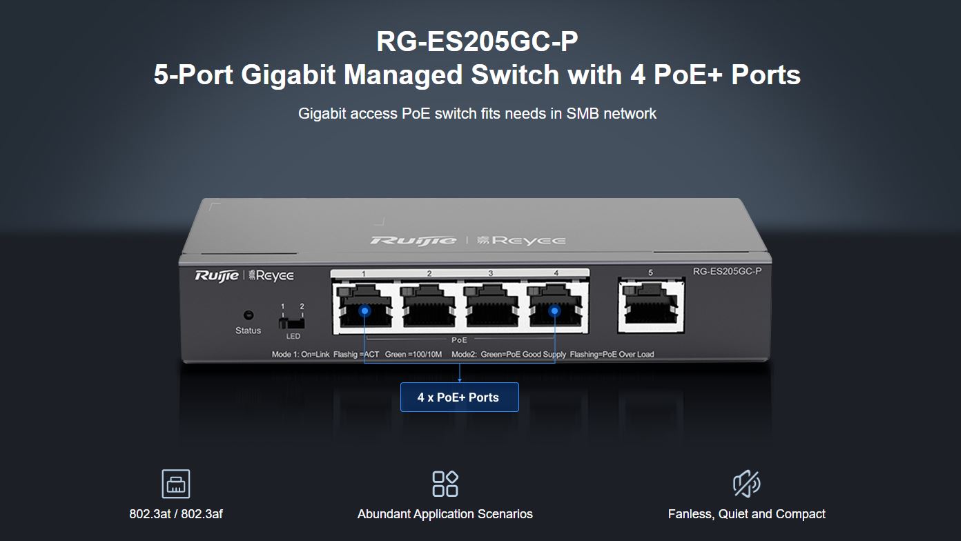 - 5-Port gigabit cloud managed switch with 4 PoE+ ports