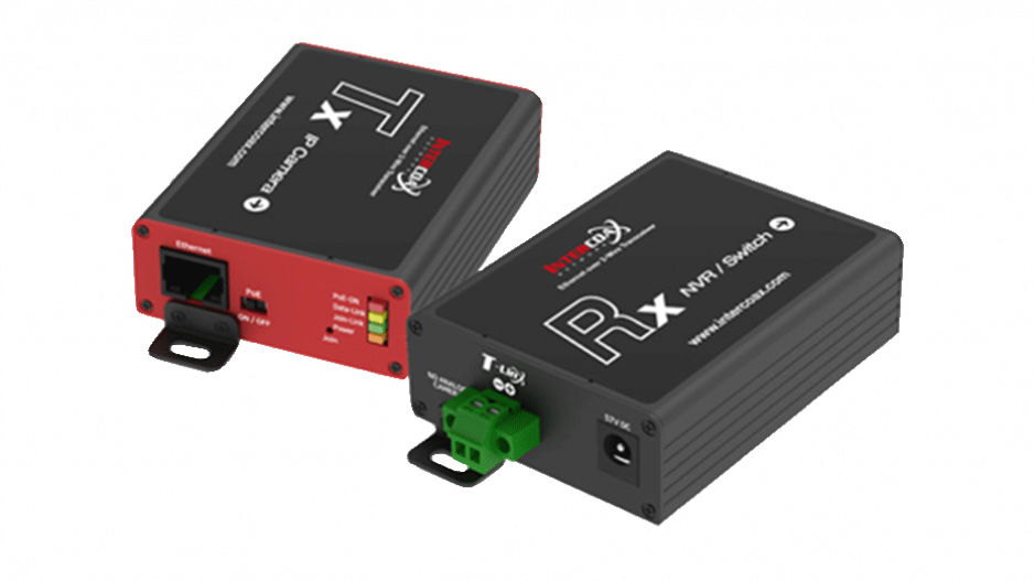 The product “MOBOTIX Mx2wire+” is no longer available. As an alternative, MOBOTIX has added the ETP-2601T/R high-speed media converter set from technology partner INTERCOAX to its product range for transmitting Ethernet and PoE+ power supply via two-wire cable.