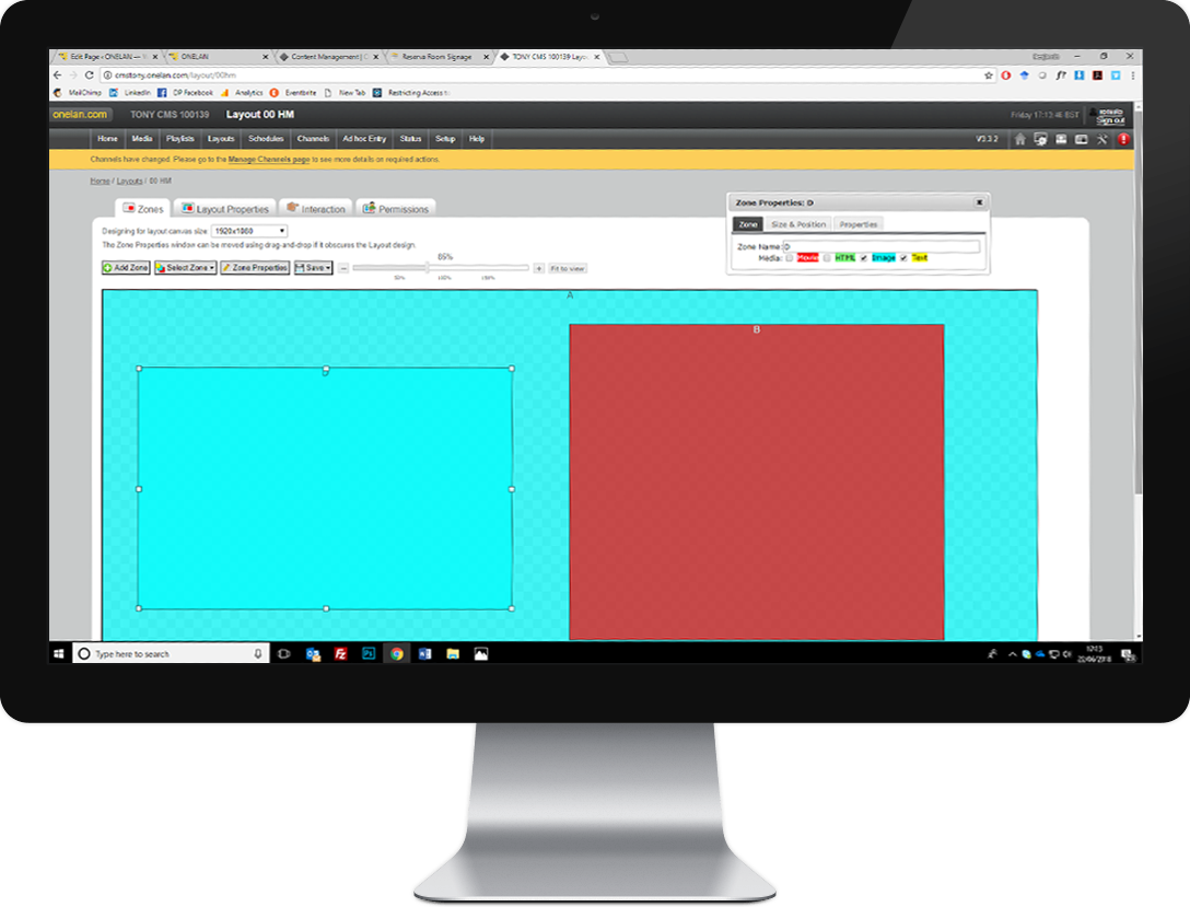 With endless possibilities on the number or positioning of zones and transparency to support layering of zones you are free to create professional looking designs. Mix video, RSS and social feeds, HTML5, live TV and IPTV streams to achieve fresh eye catching content.