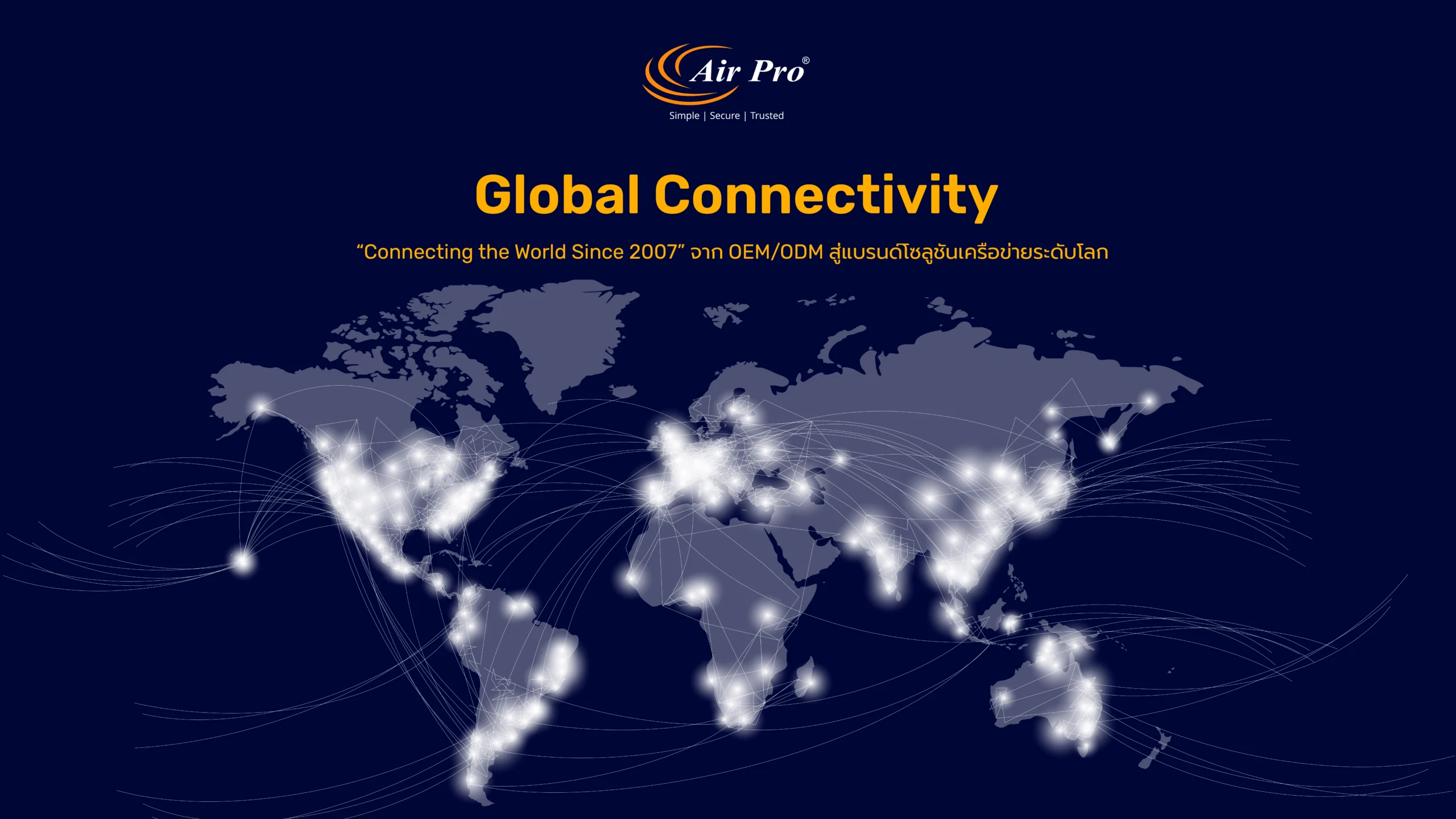 Air Pro Network ก่อตั้งขึ้นในปี 2007 ที่ประเทศแคนาดา ด้วยทีมงานมืออาชีพที่มีทักษะและประสบการณ์สูง พร้อมพนักงานทั้งหมดกว่า 200 คน ทำให้สามารถเชื่อมั่นในความสามารถในการพัฒนาผลิตภัณฑ์ Air Pro เริ่มต้นด้วยธรุกิจบริการ OEM และ ODM ผลิตภัณฑ์ต่างๆ เช่น Wi-fi router , Ethernet switch,  Wireless USB ฯ จนถึงปี 2014 จึงได้เปิดตัวแบรนด์ผลิตภัณฑ์ของตัวเองในชื่อ Air Pro ด้วยไลน์ผลิตภัณฑ์ที่หลากหลาย อาธิเช่น Router, Switch PoE, Outdoor CPE, AP สำหรับเพดานและผนัง เป็นต้นฯ