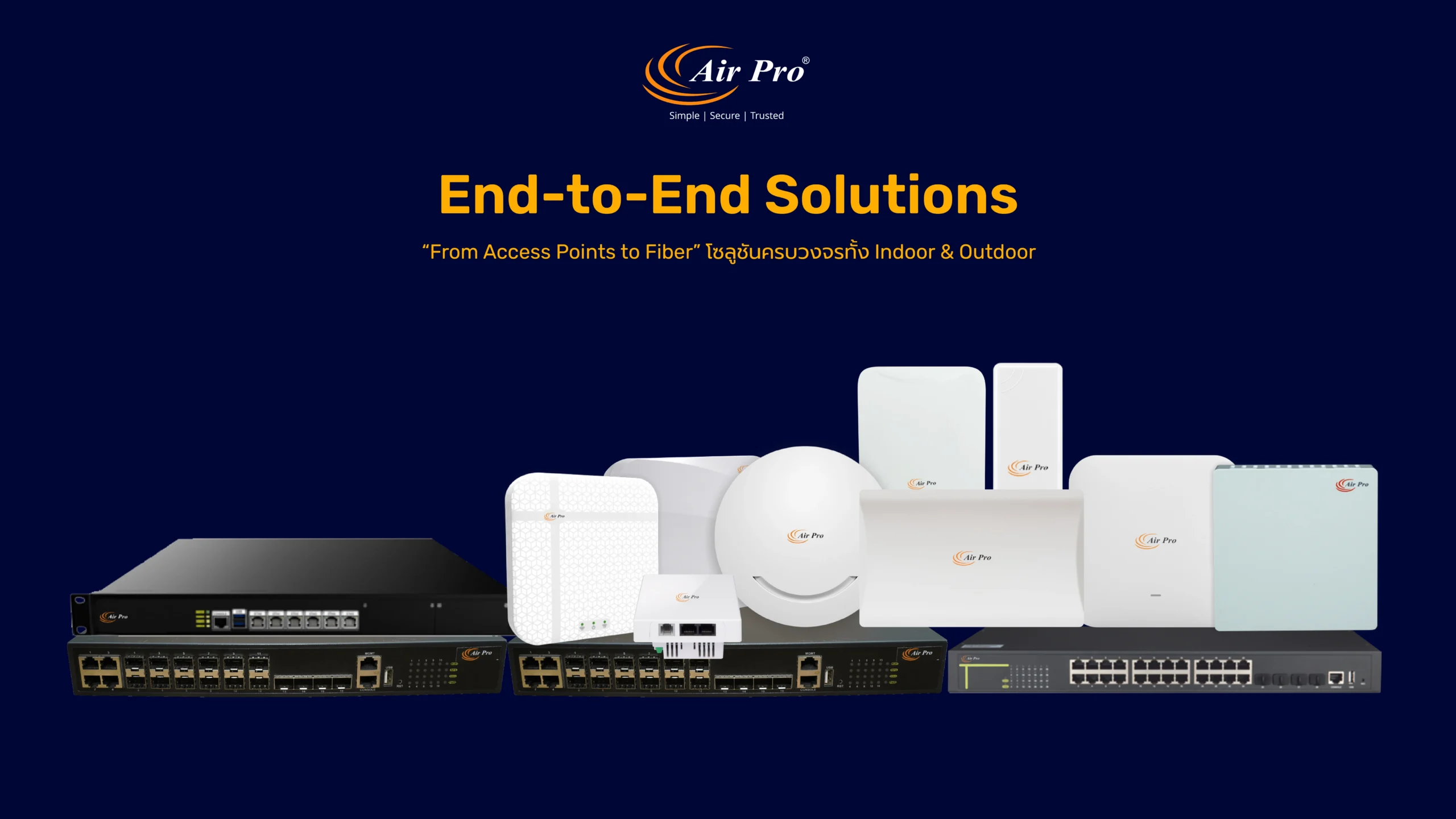 ตั้งแต่ Access Points, Switches, Routers, Controllers, 4G/5G CPE จนถึง Fiber Solutions รองรับทั้งบ้าน ธุรกิจ และองค์กร